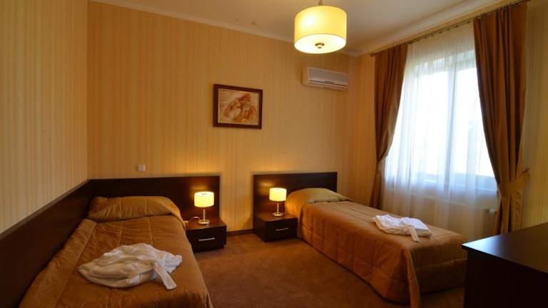 Das Hotel bietet eine 24-Stunden-Rezeption sowie kostenfreies WLAN. Es enthält zudem einen Schönheitssalon und ein traditionelles ukrainisches Restaurant, das eine Kombination aus lokalen und internationalen Gerichten serviert.