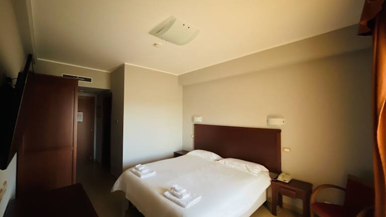 Die 50 Zimmer des Città della Notte sind elegant und modern eingerichtet. Zur Ausstattung gehören eine Klimaanlage, ein Minikühlschrank, Internetzugang und ein Telefon. Es steht auch ein Familienzimmer zur Verfügung.