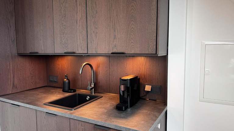 Die Ferienwohnung umfasst zwei Schlafzimmer, eine voll ausgestattete Küche mit Kühlschrank und Geschirrspüler sowie ein Badezimmer mit Dusche und Haartrockner. Handtücher und Bettwäsche werden zur Verfügung gestellt.