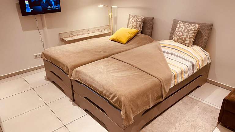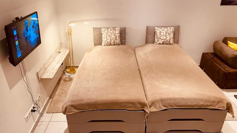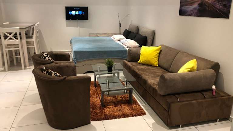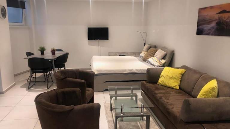 Das City Apartment bietet modernen Komfort und ist ideal für Reisende, die ein Zuhause fernab von Zuhause suchen. Das Apartment verfügt über zwei Zimmer mit einem gemütlichen Wohn- und Schlafbereich, der mit einem Flachbild-TV ausgestattet ist. Die komplett ausgestattete Küche bietet alles, was Sie für die Zubereitung von Mahlzeiten benötigen, einschließlich Geschirrspüler und Mikrowelle. Eine Waschmaschine steht ebenfalls zur Verfügung. Das Badezimmer verfügt über eine Dusche und bietet alle notwendigen Annehmlichkeiten. Kostenloses WLAN ist im gesamten Apartment verfügbar, so dass Sie immer mit der Welt verbunden bleiben können.
