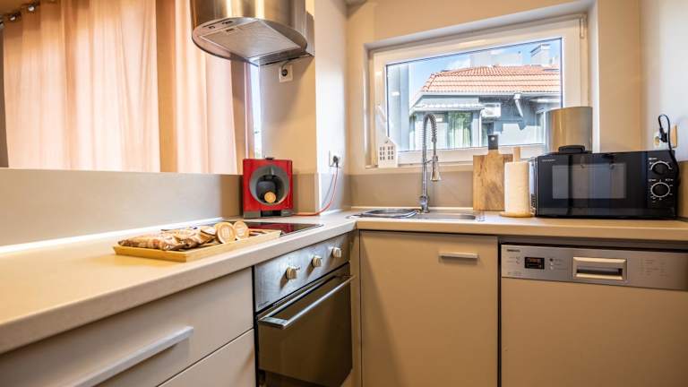 Die Ferienwohnung umfasst 2 Schlafzimmer, ein Wohnzimmer, einen Flachbild-TV sowie eine gut ausgestattete Küche mit Kühlschrank und Geschirrspüler. Das Badezimmer verfügt über eine Dusche. Handtücher und Bettwäsche werden bereitgestellt.