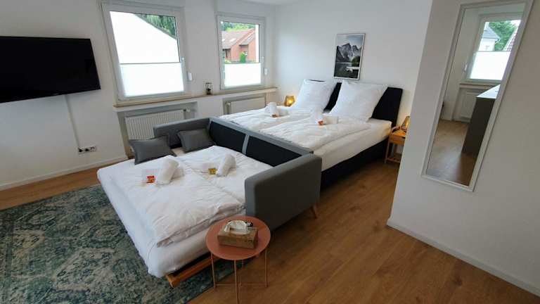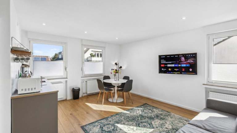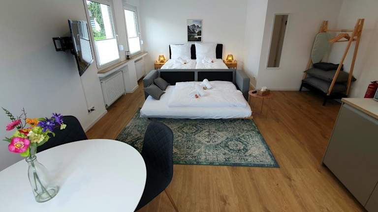 City Chalet-Uni- BOXSPRINGBETT Küche-ruhig-Parkplatz bietet Übernachtungsmöglichkeiten in einer ruhigen Lage mit Gartenblick. Die Unterkunft ist eine Ferienwohnung, die von einem privaten Gastgeber geführt wird und bietet einen kostenlosen Privatparkplatz. Der Einchecken kann von 15:00 bis 23:30 Uhr erfolgen, während der reguläre Checkout zwischen 01:00 und 10:00 Uhr stattfindet. In der Unterkunft sind Feiern wie Junggesellenabschiede nicht erlaubt.