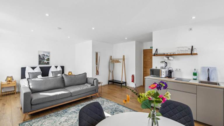 Die Ferienwohnung bietet ein Schlafzimmer, eine voll ausgestattete Küche mit Kühlschrank und Geschirrspüler sowie ein Badezimmer mit Dusche, Haartrockner und Waschmaschine. Handtücher und Bettwäsche sind in der Unterkunft verfügbar. Es sind Nichtraucherzimmer vorhanden.