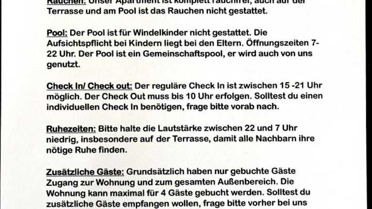 Die Ferienwohnung umfasst ein Schlafzimmer und ein Badezimmer. Zur Ausstattung gehören Bettwäsche, Handtücher, ein Flachbild-TV, ein Essbereich, eine voll ausgestattete Küche und eine Terrasse. Handtücher und Bettwäsche können gegen Aufpreis bereitgestellt werden.