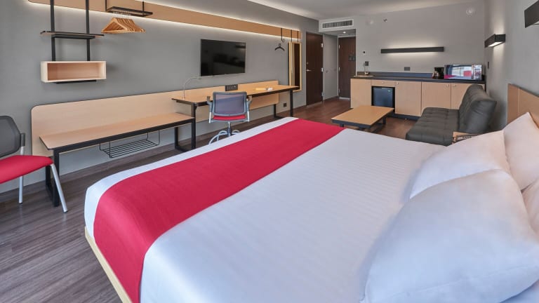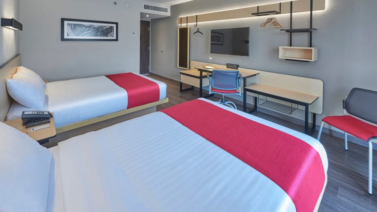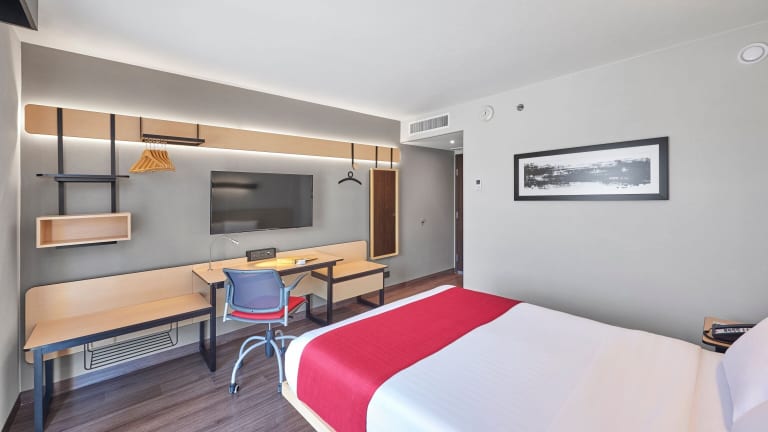 Die Zimmer sind mit einem Kingsizebett und einem Sofabett ausgestattet sowie einem Schreibtisch, einem Flachbild-TV und kostenlosen Pflegeprodukten. Jedes Zimmer verfügt über ein eigenes Badezimmer mit Dusche und Haartrockner. Es sind auch rollstuhlgerechte Zimmer verfügbar.