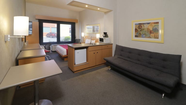 Die Zimmer sind mit Klimaanlage, Heizung, einem Doppelbett, einem Safe und einem Schreibtisch ausgestattet. Eine Kochnische mit Mikrowelle und Tee-/Kaffeemaschine ist ebenfalls vorhanden. Weiterhin stehen ein Telefon, ein TV-Gerät und kostenfreies WLAN zur Verfügung. Die Badezimmer sind mit Dusche und Badewanne sowie einem Haartrockner ausgestattet. Rollstuhlgerechte Zimmer und Nichtraucherzimmer sind buchbar.
