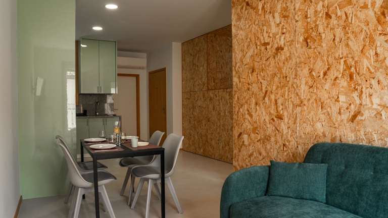 Die Apartments verfügen über eine voll ausgestattete Küche mit einem Essbereich, in der Gäste die Möglichkeit haben, eigene Mahlzeiten zuzubereiten. Zur Ausstattung gehören ein Kühlschrank, ein Geschirrspüler, ein Ofen, eine Kaffeemaschine und ein Wasserkocher.