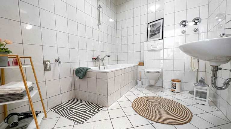 Die Ferienwohnung umfasst 2 Schlafzimmer, eine Küche ausgestattet mit einem Kühlschrank und einem Ofen sowie ein Badezimmer mit einer Badewanne. Handtücher und Bettwäsche werden bereitgestellt.