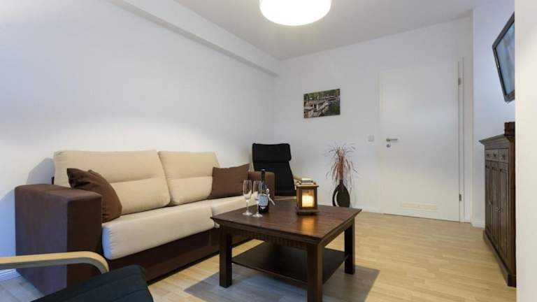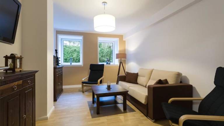 Die Ferienwohnung verfügt über ein Schlafzimmer, ein Wohnzimmer und eine voll ausgestattete Küche mit Kühlschrank und Kaffeemaschine. Ein Badezimmer mit Dusche und kostenlosen Pflegeprodukten ist ebenfalls vorhanden. Handtücher und Bettwäsche werden bereitgestellt. Die Unterkunft bietet Annehmlichkeiten wie kostenloses WLAN, einen TV, sowie eine Heizung.