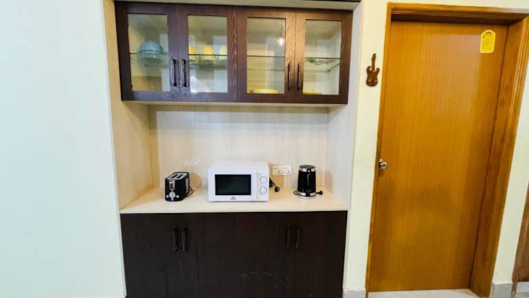Die Unterkunft bietet eine klimatisierte Ferienwohnung mit einem Schlafzimmer. Zur Ausstattung gehören ein Flachbild-TV sowie eine Küche, die mit einem Kühlschrank und einer Mikrowelle ausgestattet ist.
