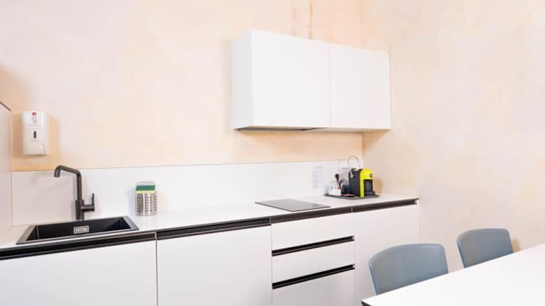 Die Unterkunft verfügt über eine voll ausgestattete Küche mit Kühlschrank und Kaffeemaschine, die eine Selbstverpflegung ermöglicht.