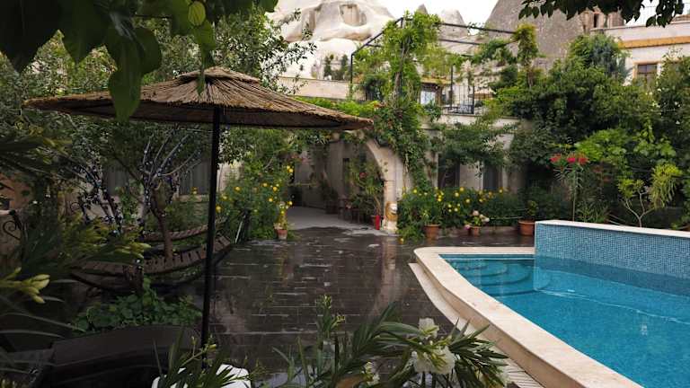 Das Roc Of Cappadocia ist ein Hotel, das authentisch und individuell gestaltete Zimmer bietet. Es ist umgeben von einer schönen Landschaft und verfügt über einen schönen Garten sowie Sitzbereiche im Freien. Die Terrasse des Hotels ermöglicht den Gästen, entspannende Momente und Sonnenuntergänge zu genießen. Es werden verschiedene Dienstleistungen angeboten, darunter Unterstützung bei der Organisation von Ausflügen und Tickets, beispielsweise für Heißluftballonfahrten.