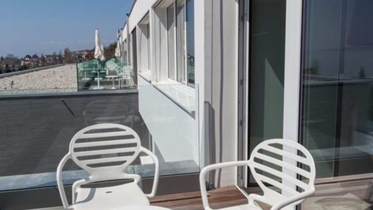 Die Zimmer sind modern und hell gestaltet. Sie bieten Annehmlichkeiten wie Klimaanlage, einen großen Flachbild-Sat-TV, einen Sitzbereich, dreifach verglaste Fenster, hochwertige Bettwäsche sowie Tee- und Kaffeezubehör. Die Badezimmer sind mit Pflegeprodukten und Haartrocknern ausgestattet. Einige Zimmer verfügen über einen Balkon oder eine Terrasse mit Blick auf den See und die Berge. Die Apartments bieten zudem eine voll ausgestattete Küche. Es stehen Familien- und Nichtraucherzimmer zur Verfügung.