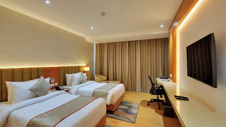 Das Clarion Hotel Bangalore bietet komfortable Unterkünfte mit einer Vielzahl von Annehmlichkeiten. Die Zimmer sind modern eingerichtet und verfügen über kostenfreies WLAN. Die Gäste haben auch Zugang zu kostenfreien Fahrrädern, einem Außenpool und einem Fitnesscenter. Das Hotel verfügt über eine 24-Stunden-Rezeption und bietet Flughafentransfers sowie eine Gemeinschaftslounge. Kostenfreie Privatparkplätze stehen den Gästen ebenfalls zur Verfügung.