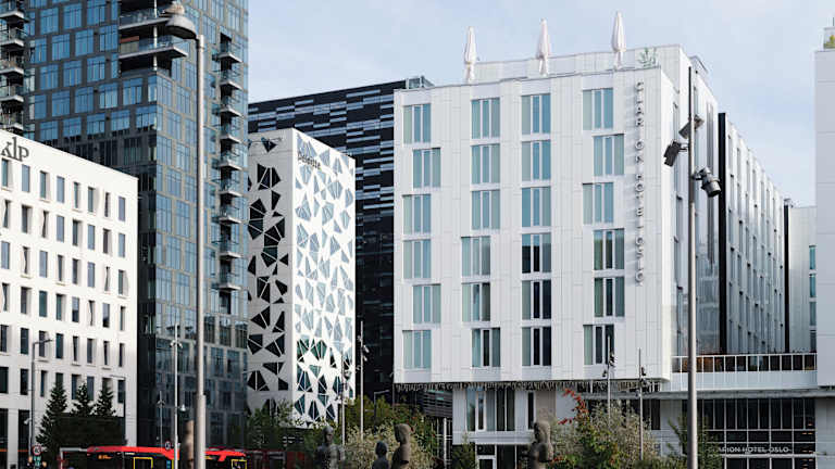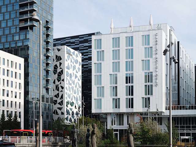 Das Clarion Hotel Oslo befindet sich im lebhaften Stadtteil Barcode in Oslo. In unmittelbarer Nähe des Hotels finden Sie das Opernhaus Oslo und das neue Munch-Museum. Die zentrale Lage ermöglicht es Ihnen, die Einkaufsstraße Karl Johan und den Hauptbahnhof von Oslo in nur 15 Gehminuten zu erreichen. Der Flughafen Oslo-Gardermoen ist etwa 37 km entfernt.