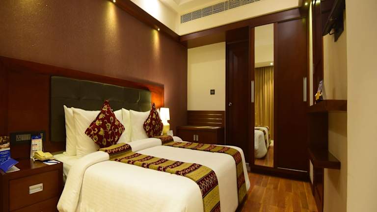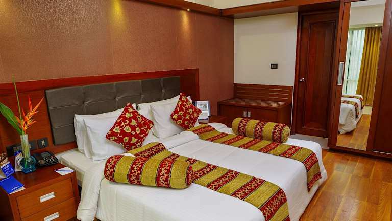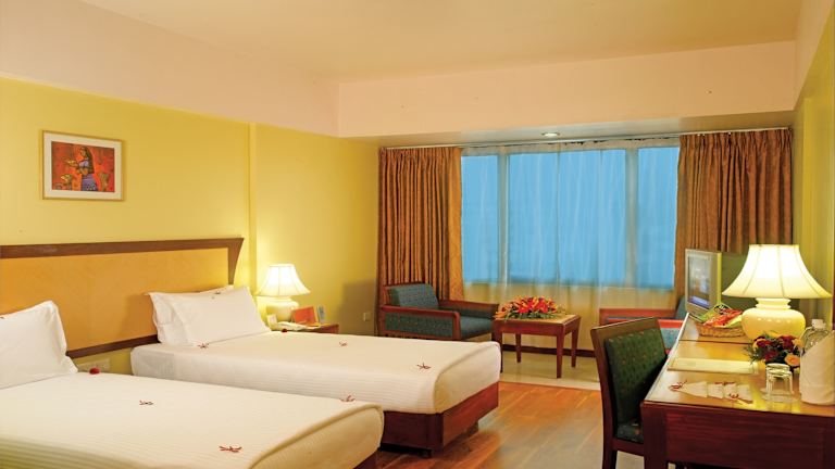 Die Zimmer im Classic Sarovar Portico Trivandrum sind klassisch eingerichtet und verfügen über einen Sitzbereich sowie Holzböden. Jedes Zimmer bietet eine Minibar und Kabel-TV. Im Badezimmer erwartet die Gäste eine Badewanne.