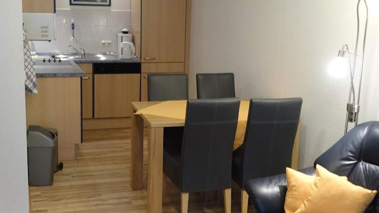 Die Ferienwohnung verfügt über eine Küche, die mit einem Kühlschrank und einem Geschirrspüler ausgestattet ist. Es sind keine spezifischen Informationen zur Verpflegung angegeben.