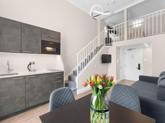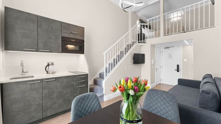 Die Zimmer sind mit einer Küchenzeile ausgestattet, die einen Kühlschrank, eine Mikrowelle und eine Herdplatte umfasst. Zusätzlich bieten die Wohneinheiten ein eigenes Badezimmer, Klimaanlage und einen Flachbild-TV.