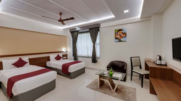 Die klimatisierten Zimmer im Click Hotel Sagar Plaza Chakan, Pune sind geräumig und komfortabel eingerichtet. Jedes Zimmer verfügt über einen eigenen Sitzbereich, einen Flachbild-Sat-TV und einen Safe. Das private Badezimmer ist mit einem Bidet, kostenfreien Pflegeprodukten und einem Haartrockner ausgestattet. Bettwäsche und Handtücher werden ebenfalls zur Verfügung gestellt.
