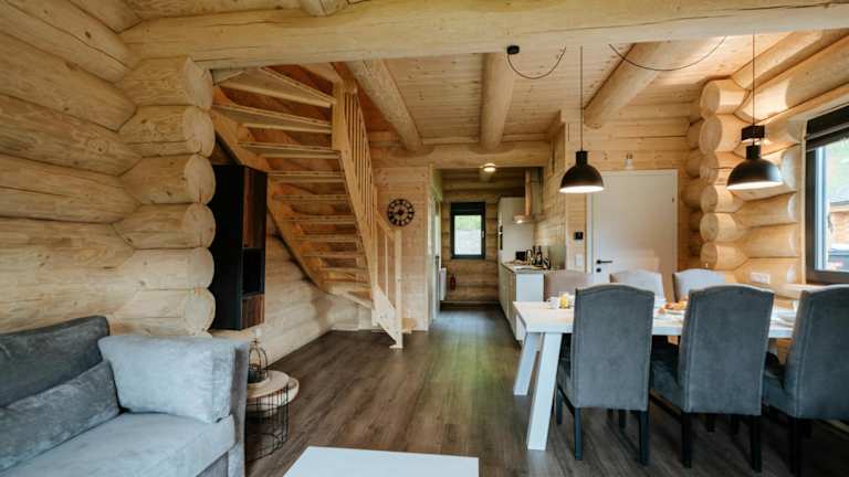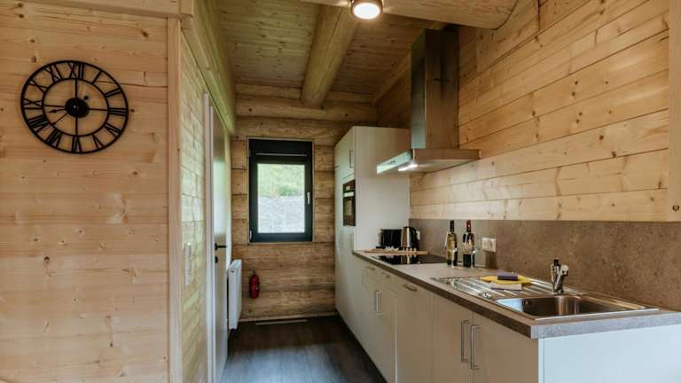 Die Lodges verfügen über einen Sitzbereich und sind mit einem Kabel Flachbild-TV ausgestattet. Zur weiteren Ausstattung gehören eine voll ausgestattete Küche mit Kühlschrank, Geschirrspüler, Ofen, Mikrowelle, Herdplatte, Kaffeemaschine und Wasserkocher. Jedes Zimmer hat ein eigenes Badezimmer mit Dusche und kostenlosen Pflegeprodukten.
