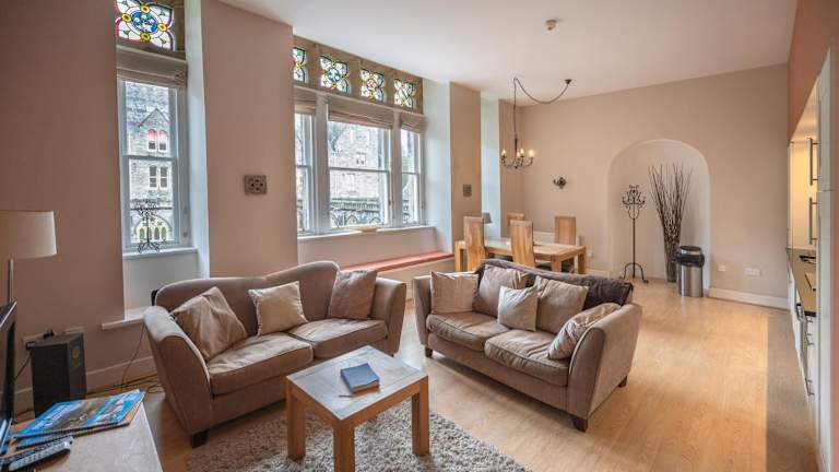Das Apartment im Cloister View verfügt über alle Annehmlichkeiten, die Sie für einen komfortablen Aufenthalt benötigen. Es bietet Ihnen ein Wohnzimmer mit einem Sitzbereich und einem Essbereich, eine voll ausgestattete Küche mit einem Kühlschrank, einem Geschirrspüler und einem Backofen sowie zwei Schlafzimmer und ein Badezimmer mit einer Dusche und einer Badewanne. Handtücher und Bettwäsche werden Ihnen zur Verfügung gestellt.