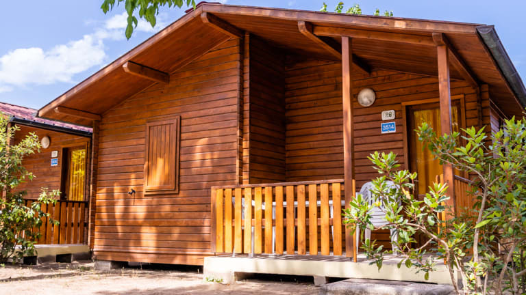 Lodge Superior Dog: Eine angenehme Unterkunft für Familien mit Tieren, mit 34 m2 innerem Raum für bis 4 Personen und ihren vierbeiniger Freund. Bequem und neben alle Dienstleistungen des Campingplatzes. 34 m2 – Tiere erlaubt 1 Schlafzimmer mit Doppelbett 1 Schlafzimmer mit 1 Etagenbett 1 Badezimmer Wohnzimmer mit Kochnische Holzterrasse mit Gittertor Chalet Comfort: 38 qm, ideal für größere Familien, ein wunderschönes Chalet in Holzbauweise, alle Einrichtungen in der Nähe 38 qm 5 qm Veranda 1 Schlafzimmer mit Doppelbett 1 Schlafzimmer mit 1 Einzelbett und 1 Etagenbett 1 Badezimmer mit WC, Waschbecken, Bidet und Dusche Wohnzimmer mit Tisch und Stühlen Kochnische