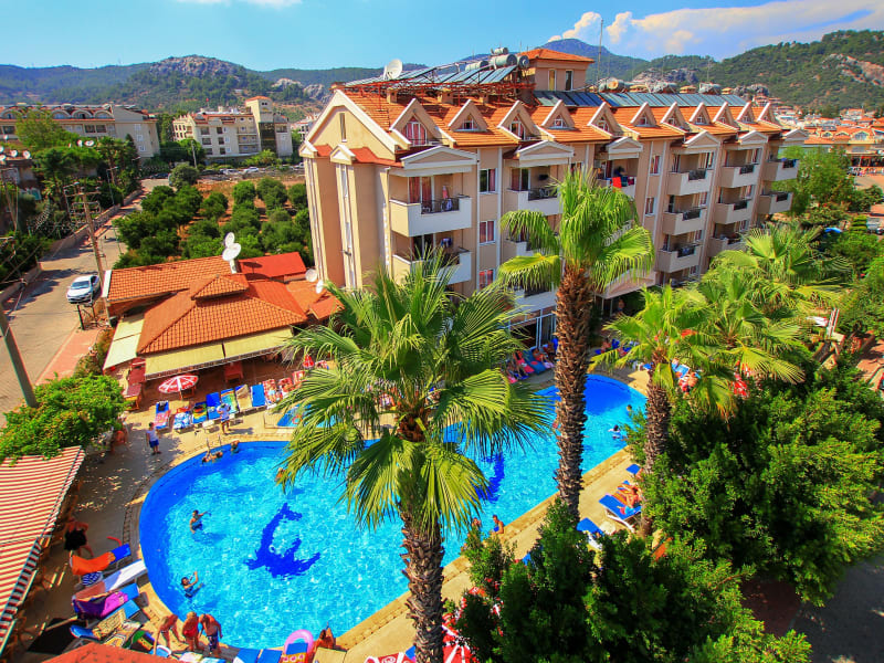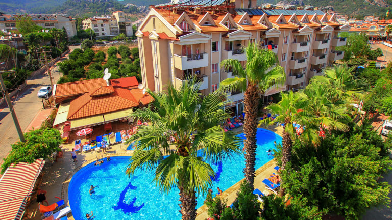 Das Aparthotel Club Sunsmile befindet sich in Marmaris, nur etwa 15 Minuten vom Stadtzentrum entfernt. Der nächstgelegene Strand ist nach einem 5-minütigen Spaziergang erreichbar. In unmittelbarer Nähe finden die Gäste zahlreiche Bars, Restaurants sowie Möglichkeiten für Nachtleben. Eine Bushaltestelle liegt ebenfalls in der Nähe, und der Flughafen Dalaman ist etwa 90 km entfernt.
