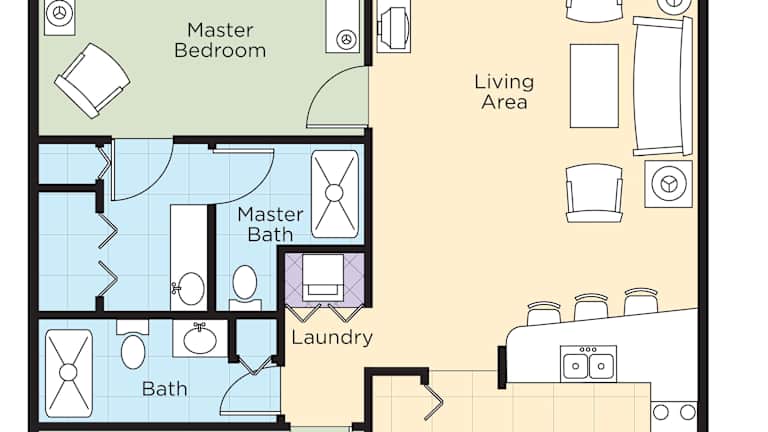 Die Villen im Club Wyndham Orlando International sind geräumig und gut ausgestattet. Jede Villa verfügt über ein privates Schlafzimmer, einen großzügigen Wohnbereich und eine voll ausgestattete Küche. Zur Ausstattung gehören auch eine Waschmaschine und ein Trockner sowie zwei Badezimmer. Die Villen sind mit mehreren Fernsehern, kostenlosem WLAN und einem CD- und DVD-Player ausgestattet.