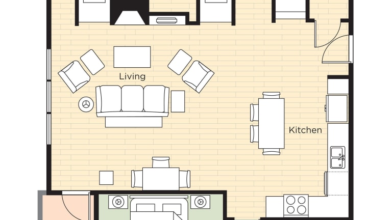 Die Zimmer sind ausgestattet mit einem Wohnbereich, einer Küche und einem modernen Badezimmer. Sie bieten Annehmlichkeiten wie Klimaanlage, Heizung, einen Balkon oder eine Terrasse mit Bergblick sowie ein Doppelbett und ein Sofabett. Zur weiteren Ausstattung zählen ein Kühlschrank, Herd, Mikrowelle, Tee- und Kaffeemaschine, Geschirrspüler, TV mit DVD-Player, kostenloses WLAN und Kosmetikartikel im Badezimmer. Das Hotel bietet auch rollstuhlgerechte Zimmer und Familienunterkünfte.