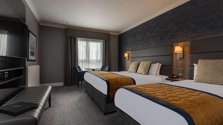 Die Zimmer sind mit Teppichböden ausgestattet und verfügen über individuell steuerbare Heizung, ein Doppelbett sowie Zustellbetten auf Anfrage. Zur Ausstattung zählen ein Safe, ein Schreibtisch, eine Tee- und Kaffeemaschine, ein Telefon mit Direktwahl, ein TV-Gerät mit Satelliten-/Kabelempfang und kostenfreies WLAN. Die Badezimmer sind mit Dusche und Badewanne ausgestattet und bieten Haartrockner sowie Kosmetikartikel.