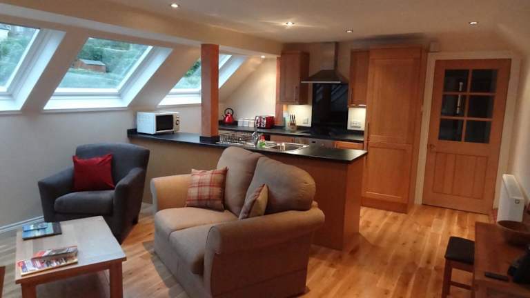 Die Unterkunft besteht aus einem umgebauten Heuboden innerhalb eines historischen Coach House aus dem 19. Jahrhundert. Das Coach House bietet einen gemütlichen Wohnbereich, eine voll ausgestattete Küche und ein eigenes Badezimmer mit kostenfreien Pflegeprodukten. Handtücher, Bettwäsche und Pflegeprodukte von Scottish Fine Soaps werden zur Verfügung gestellt. WLAN ist in allen Bereichen kostenlos verfügbar und Sie können unbegrenzt Filme und TV-Shows im Instant-Streaming genießen.