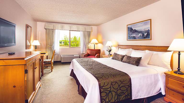 Das Coast Inn at Lake Hood ist ein einzigartiges Hotel, das nur einen kurzen Spaziergang vom geschäftigsten Wasserflughafen der Welt entfernt liegt. Hier können Sie den Anblick der startenden und landenden Wasserflugzeuge genießen und im Winter sogar Flugzeuge mit Skiern auf dem zugefrorenen See landen sehen. Das Hotel ist mit Alaska-Buschpiloten Memorabilia und historischen Fotografien dekoriert, die vom Alaska Aviation Museum nebenan zur Verfügung gestellt werden. Die Zimmer sind komfortabel und gut ausgestattet, und das Hotel bietet eine Vielzahl von Annehmlichkeiten wie ein Restaurant mit Lounge und monatlichen saisonalen Spezialitäten, kostenloses WLAN, ein Fitnesscenter und einen kostenlosen Flughafen-Shuttle.