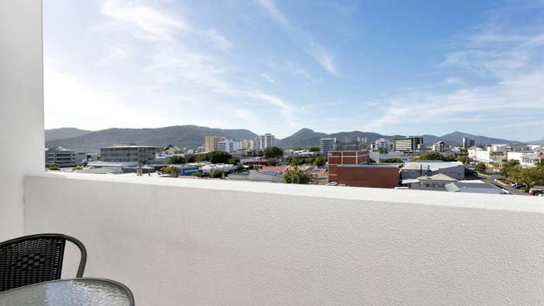 Coastal Chic in Heart of Cairns with Rooftop Pool bietet eine Ferienwohnung mit Balkon, die einen Stadt- und Bergblick ermöglicht. Die Unterkunft ist klimatisiert und bietet kostenloses WLAN sowie Zugang zu einer Terrasse.