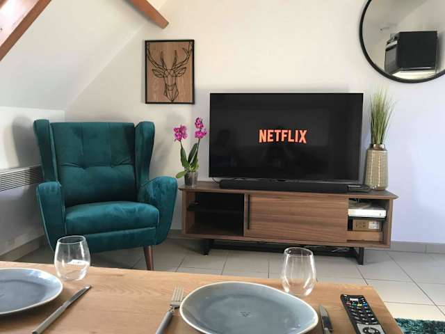 Die Ferienwohnung bietet ein Wohnzimmer sowie ein Badezimmer mit Dusche, kostenlosen Pflegeprodukten und einem Haartrockner. Ein Satelliten-Flachbild-TV ist ebenfalls Teil der Ausstattung.