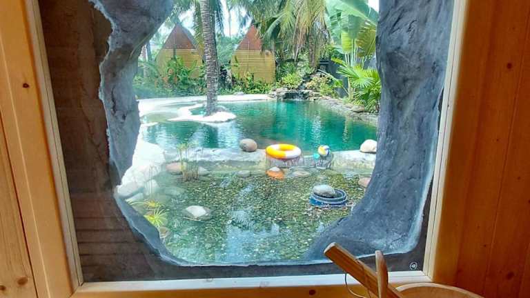 Die Unterkünfte im Cóc Retreat umfassen Familienzimmer und ein eigenes Bad sowie einen Fernseher, die für einen komfortablen Aufenthalt sorgen.