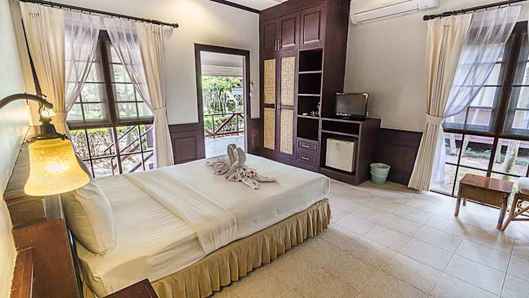 Die klimatisierten Bungalows im Coco Palm Beach Resort sind von tropischer Vegetation umgeben und verfügen über eine Einrichtung im thailändischen Stil mit Holzmöbeln. Jeder Bungalow bietet Sat-TV, Warmwasserduschen und Bademäntel für Ihren Komfort.