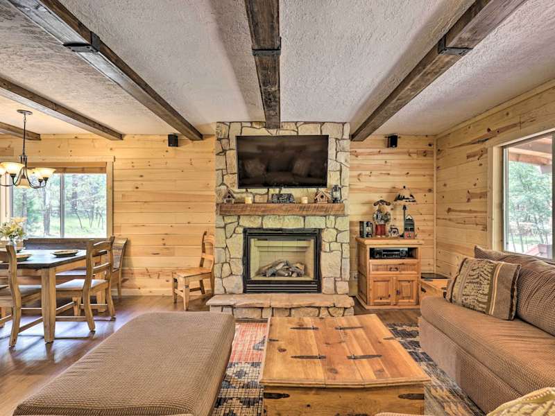 Das Coconino Cabin with Kayaks about 13 Mi to Reservoir in Happy Jack ist ein gemütliches Ferienhaus, das Ihnen einen entspannten Aufenthalt inmitten der Natur bietet. Mit kostenfreiem WLAN und einer voll ausgestatteten Küche haben Sie alles, was Sie für einen komfortablen Aufenthalt benötigen. Entdecken Sie die Umgebung und nutzen Sie die vorhandenen Kajaks, um den nahegelegenen Stausee zu erkunden.