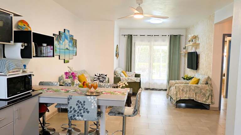 Die Ferienwohnung im Coconut Palm Retreat besteht aus 3 Schlafzimmern, einem Wohnzimmer und einer voll ausgestatteten Küche, die mit einem Kühlschrank und einer Kaffeemaschine ausgestattet ist. Darüber hinaus bietet die Unterkunft zwei Badezimmer, die unter anderem mit einem Bidet und einer Dusche ausgestattet sind. Handtücher und Bettwäsche werden bereitgestellt. Die Unterkunft ist klimatisiert und bietet Nichtraucherzimmer.