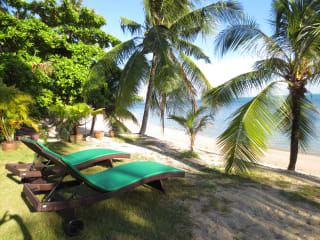 Die Anlage Coconut Village besteht aus 15 Ferienhäuser, direkt gelegen am atemberaubenden Bang Por Beach, im Norden von Koh Samui. Die geräumigen Ferienhäuser bieten einen Platz, wo Sie Ruhe finden und Sie Ihren Urlaub geniessen können. Coconut Village liegt fünf Kilometer von der Stadt Maenam entfernt und ist ideal für Familien und Paare, die in gemütlicher privater Atmosphäre entspannen wollen. Das Anwesen ist in Familienbesitz und wird auch von dieser verwaltet. Die Gäste erwartet ein hohes Maß an Sorgfalt Die Holzhäuser sind im traditionellen thailändischen Stil erbaut, und bieten auf 2 Etagen modernen Komfort. Bei einigen Häusern befindet sich im oberen Stockwerk auf der Dachgalerie ein offener Schlafbereich mit einem oder zwei Doppelbetten sowie ein zweites Badezimmer. Die restlichen Häuser verfügen im oberen Stockwerk über einen abgeschlossenen Schlafbereich sowie ein zweites Badezimmer. Im Erdgeschoss sind bei allen Häusern ein weiteres Schlafzimmer, ein Badezimmer und der Wohn- Essbereich mit offener Küche. Ein Haus in der Anlage verfügt über einen privaten Pool. Die Küchen mit vorgesetzter Bar sind mit den notwendigen Elektro- und Haushaltsgeräten ausgestattet. Alle Häuser verfügen über Kabel-TV, DVD-Spieler, Internetzugang und Klimaanlage in den Schlafräumen.