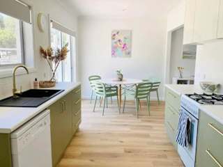 Das klimatisierte Ferienhaus im COD & C0 Tocumwal bietet Platz für bis zu 6 Personen. Es verfügt über 3 separate Schlafzimmer, die für Privatsphäre und Komfort sorgen. Die voll ausgestattete Küche bietet alles, was Sie für die Zubereitung von Mahlzeiten benötigen. Das Badezimmer ist modern und gut ausgestattet. Ein Flachbild-TV steht zur Verfügung, um sich zu entspannen und Unterhaltung zu genießen.