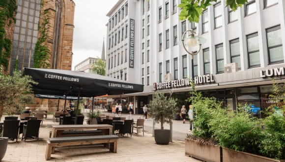 Wenn Du schon immer davon geträumt hast, einfach für eine Nacht ins Coffee Fellows zu ziehen und Deinen Tag mit einer leckeren Tasse Kaffee im Coffee Shop zu beginnen, dann ist unser erstes Coffee Fellows Hotel in der Dortmunder City genau das Richtige für Dich! Mitten im Ruhrgebiet, in Dortmund findest du nicht nur unseren gemütlichen Coffeeshop, sondern daran angeschlossen seit 2018 auch unser Hotel mit ökologischer Verantwortung. Die direkte Citylage bietet eine sehr gute Verkehrsanbindung und Ausgangslage für deinen Besuch von Veranstaltungen oder Sightseeing-Touren.