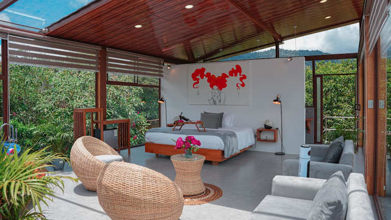 Alle Zimmer sind mit einer eigenen Terrasse und/oder einem Balkon ausgestattet. Einige Zimmer verfügen über einen internen Whirlpool und einen Flachbild-Sat-TV. Die Glamping-Vip-Glas-Zimmer bieten zudem Klimaanlage und einen 360-Grad-Blick auf den Nebelwald.