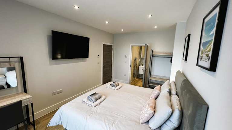Die Unterkunft Colonels Apartment befindet sich in Sandown, nur 500 Meter vom Sandown Beach entfernt. Die Umgebung bietet verschiedene Attraktionen, darunter Dinosaur Isle in 400 Metern Entfernung und den Amazon World Zoo Park, der 6,2 km entfernt ist. Weitere Sehenswürdigkeiten sind Blackgang Chine (18 km) und Osborne House (19 km). Der nächstgelegene Flughafen ist der Flughafen Southampton, welcher sich 58 km von der Unterkunft befindet.