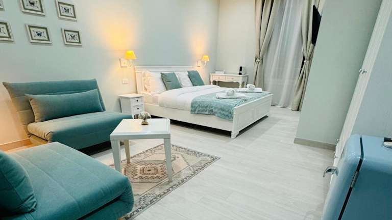 Die klimatisierten Zimmer sind mit einem Schreibtisch, einer Kaffeemaschine, einem Kühlschrank, einer Mikrowelle, einem Safe und einem Flachbild-TV ausgestattet. Jedes Zimmer verfügt über ein eigenes Badezimmer mit einem Bidet. Zusätzlich sind ein Kleiderschrank und ein Wasserkocher vorhanden.