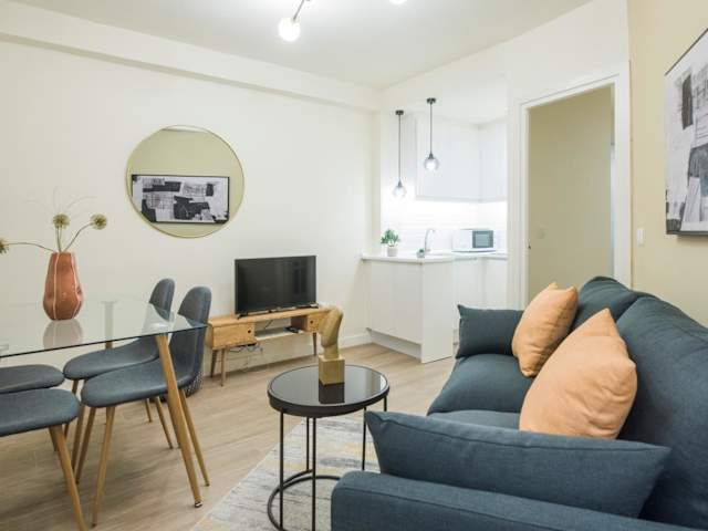 Das Apartment im Apartamento Comercio 37 verfügt über ein Schlafzimmer, einen gemütlichen Wohnbereich mit Flachbild-TV, einen Essbereich und eine gut ausgestattete Küche mit Kühlschrank und Mikrowelle. Handtücher und Bettwäsche werden gestellt, um Ihren Aufenthalt so angenehm wie möglich zu gestalten.