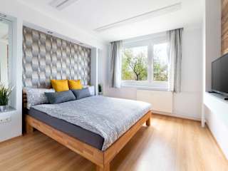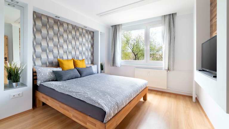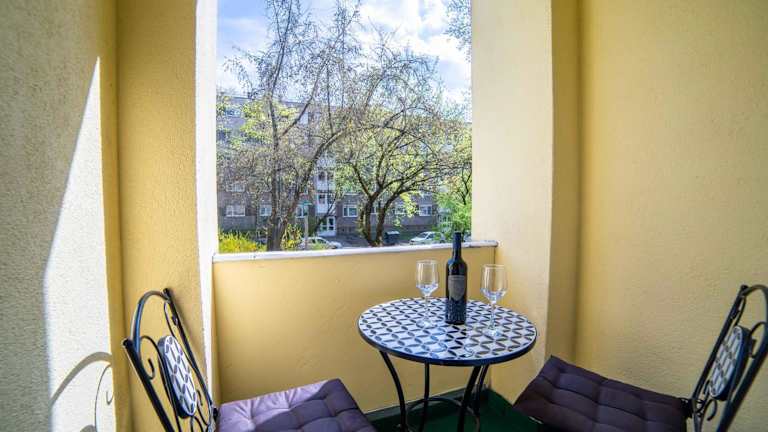 Comfort 66-- Modern 3-Room with Balcony for Families & Business bietet klimatisierte Übernachtungsmöglichkeiten und Zugang zu einem Kinderspielplatz. Die Unterkunft zeichnet sich durch eine Terrasse aus.