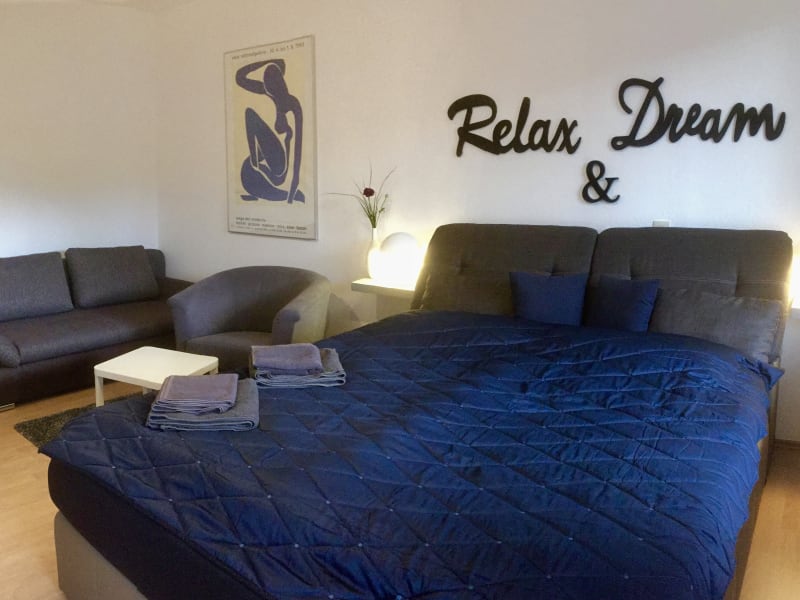Das Apartment verfügt über einen Wohn- und Schlafraum, eine separate Küche und ein separates Bad mit großer Dusche