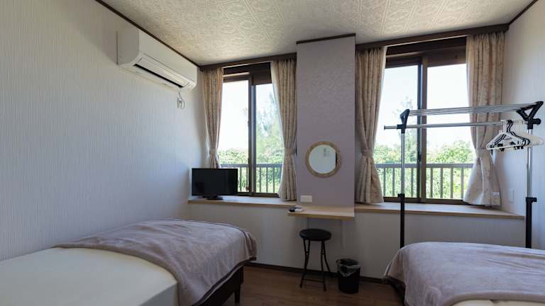 Das Comfort House In Miyakojima ist ein geräumiges Ferienhaus mit 5 Schlafzimmern und 2 Badezimmern. Die Unterkunft verfügt über eine voll ausgestattete Küche, in der Sie Ihre eigenen Mahlzeiten zubereiten können, sowie einen gemütlichen Essbereich. Die Zimmer sind klimatisiert und mit allen Annehmlichkeiten ausgestattet, die Sie für einen angenehmen Aufenthalt benötigen. Handtücher und Bettwäsche werden gestellt. Auf der Terrasse des Hauses können Sie den Blick auf die Stadt genießen.