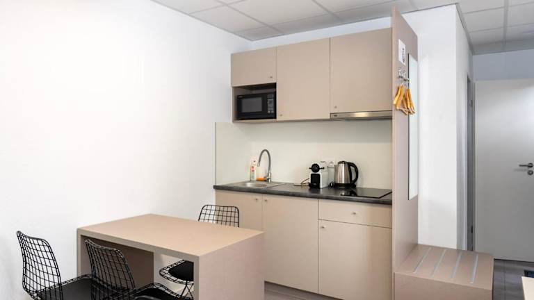 Die Apartments verfügen über eine voll ausgestattete Küche mit Kühlschrank, Geschirrspüler, Mikrowelle sowie Kaffeemaschine und Wasserkocher, was die Selbstverpflegung ermöglicht.