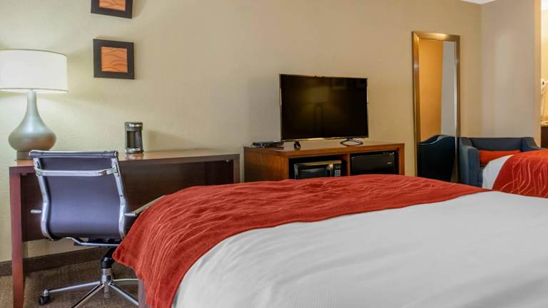 Das Hotel Comfort Inn Albuquerque Airport verfügt über 72 Nichtraucherzimmer, die mit Klimaanlage, Heizung und allen notwendigen Annehmlichkeiten ausgestattet sind. Einige Zimmer verfügen über einen Balkon und zusätzliche Ausstattungsmerkmale wie einen Schreibtisch, einen Kühlschrank, eine Mikrowelle und eine Kaffeemaschine. Das Hotel bietet auch rollstuhlgerechte Zimmer mit barrierefreiem Badezimmer.